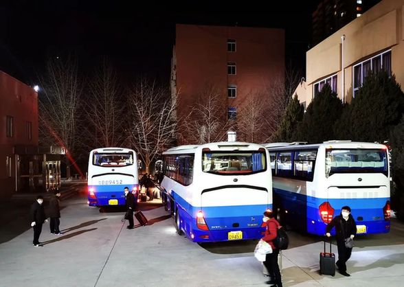 為便于調(diào)度員安全往返調(diào)度指揮中心,隔離點(diǎn)安排3輛大客車,從6時(shí)30分第一班車發(fā)出至20時(shí)不間斷接送。