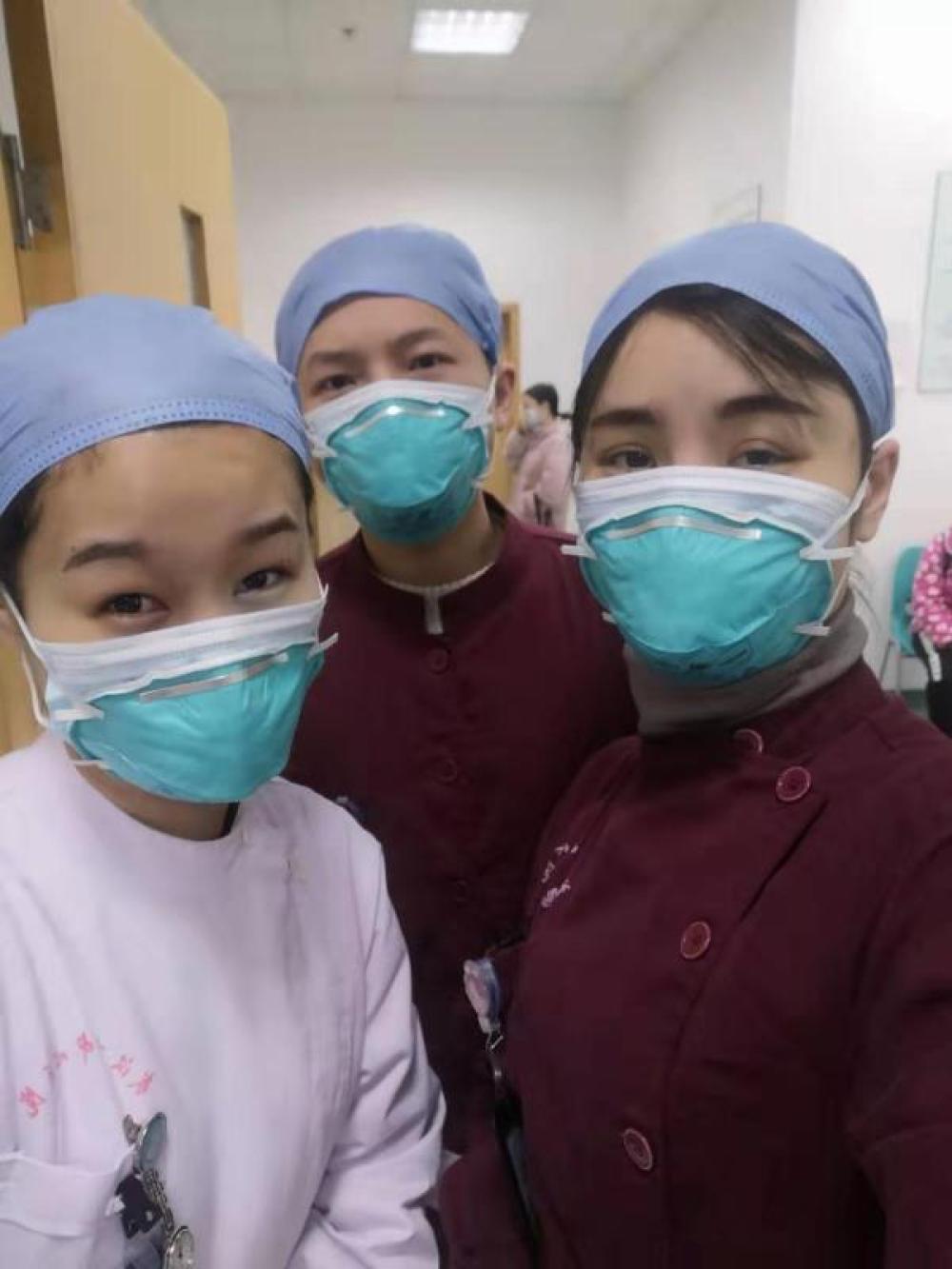 圖為李婷與醫(yī)護(hù)人員在一起。