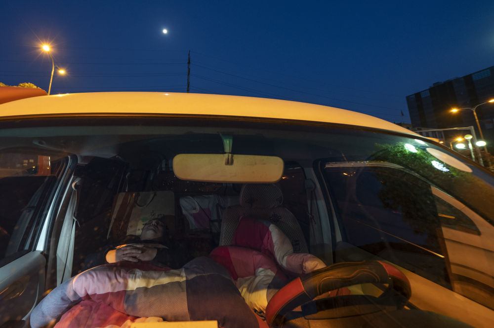 ↑37日,入夜之后,馬增辰在自己的面包車上進入了夢鄉(xiāng)。此時,一輪明月爬上了半空。