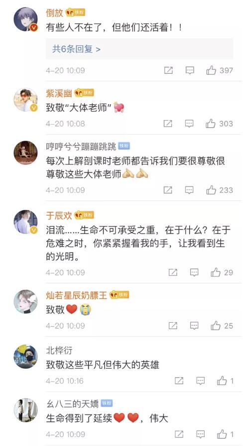 “感謝您及家人無私捐獻逝者遺體用于醫(yī)學研究,為我國抗擊新型冠狀病毒肺炎疫情作出突出貢獻。對您及家人的這種無私奉獻精神,我們表示由衷的欽佩!正是由于有你們的奉獻行動,醫(yī)學事業(yè)才得以推動進步和發(fā)展。謹向逝者致以深切的哀悼,并向您和家人表示崇高的敬意!”