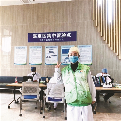 還在隔離時,曹元元就希望隔離結(jié)束后能夠當(dāng)一名志愿者回饋社會,她也詢問了嘉定區(qū)的工作人員。她告訴北青報記者,因為在機場檢疫時收獲感動,一開始她最想去機場當(dāng)志愿者,后來得知工作強度太大,機場主要招募男性志愿者,于是她選擇到嘉定區(qū)一個隔離點當(dāng)志愿者。4月15日,曹元元正式上崗。