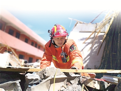 圖為丁良浩在甘肅蘭州參加全國地震救援培訓(xùn)。