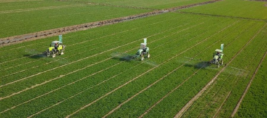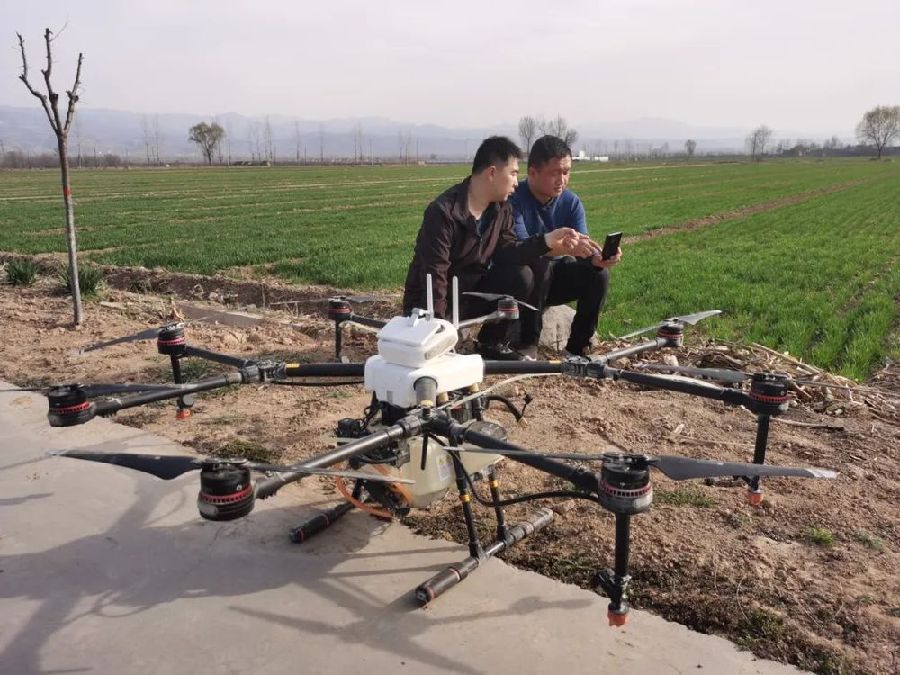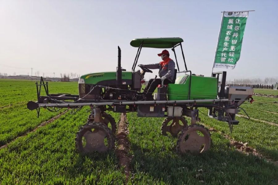 農(nóng)業(yè)托管改變了當(dāng)?shù)氐霓r(nóng)業(yè)生產(chǎn)方式,山西省翼城縣新翔豐農(nóng)業(yè)科技有限公司植保作業(yè)人員在田間進行除草作業(yè) 李虎威 攝
