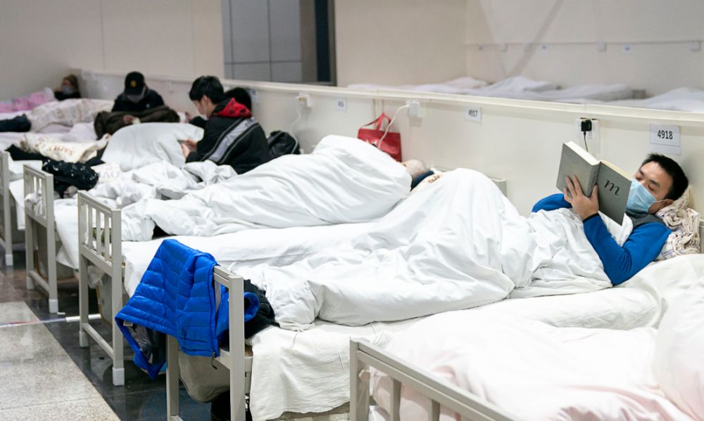 2月5日晚,一名患者在武漢“江漢方艙醫(yī)院”內(nèi)看書。新華社記者熊琦攝