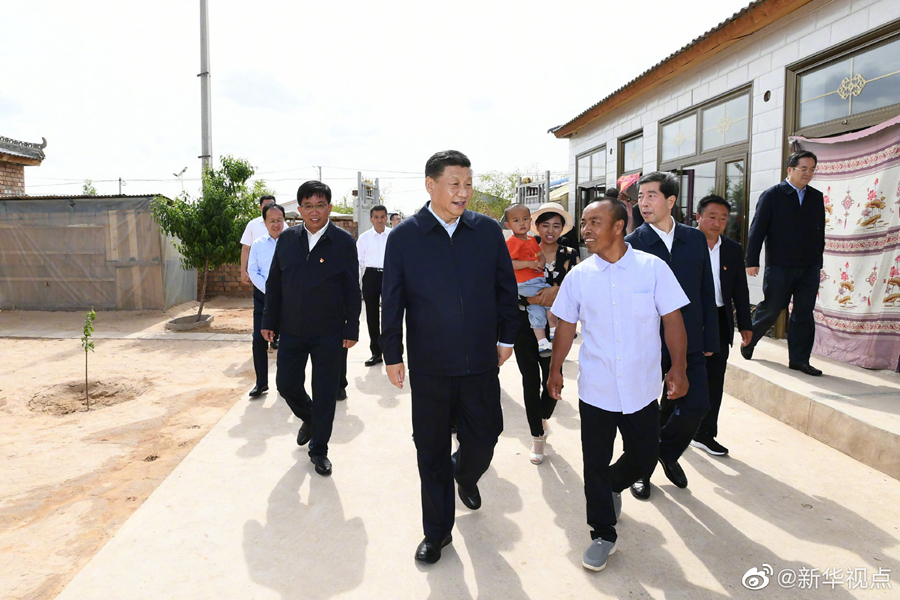 習(xí)近平總書(shū)記8日赴寧夏考察調(diào)研。當(dāng)天下午,他先后來(lái)到吳忠市紅寺堡鎮(zhèn)弘德村、黃河吳忠市城區(qū)段、金星鎮(zhèn)金花園社區(qū),了解當(dāng)?shù)赝七M(jìn)脫貧攻堅(jiān)、加強(qiáng)黃河流域生態(tài)保護(hù)、促進(jìn)民族團(tuán)結(jié)等情況。(文字記者:張曉松、朱基釵 攝影記者: 鞠鵬、謝環(huán)馳、王曄、燕雁)