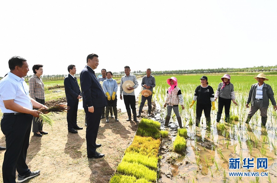 6月8日至10日,中共中央總書記、國家主席、中央軍委主席習近平在寧夏考察。這是6月9日下午,習近平在銀川市賀蘭縣稻漁空間鄉(xiāng)村生態(tài)觀光園,同正在勞作的村民親切交談。 新華社記者 鞠鵬 攝