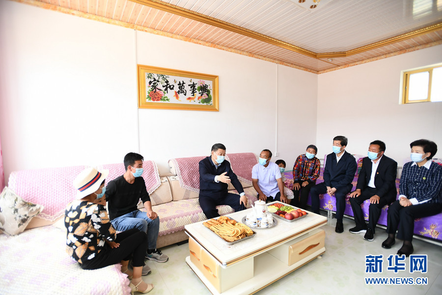 6月8日至10日,中共中央總書記、國家主席、中央軍委主席習近平在寧夏考察。這是6月8日下午,習近平在吳忠市紅寺堡區(qū)紅寺堡鎮(zhèn)弘德村,同回族村民劉克瑞一家親切交流。 新華社記者 謝環(huán)馳 攝