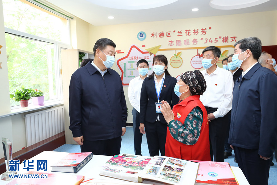 6月8日至10日,中共中央總書記、國家主席、中央軍委主席習近平在寧夏考察。這是6月8日下午,習近平在吳忠市利通區(qū)金花園社區(qū)黨群活動服務中心,同社區(qū)志愿者代表親切交談。 新華社記者 鞠鵬 攝