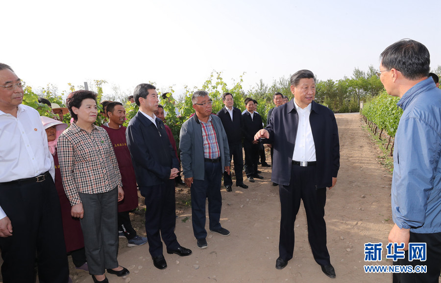 6月8日至10日,中共中央總書記、國家主席、中央軍委主席習近平在寧夏考察。這是6月9日下午,習近平在銀川市西夏區(qū)葡萄種植基地,同工人和技術人員交流。 新華社記者 鞠鵬 攝