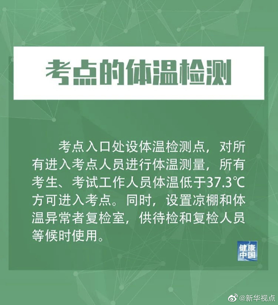 此外,措施提到,對參與組考、監(jiān)考環(huán)節(jié)的工作人員和考生,要求提前14天進行日常體溫測量和身體健康狀況監(jiān)測,做到每天體溫測量并記錄。