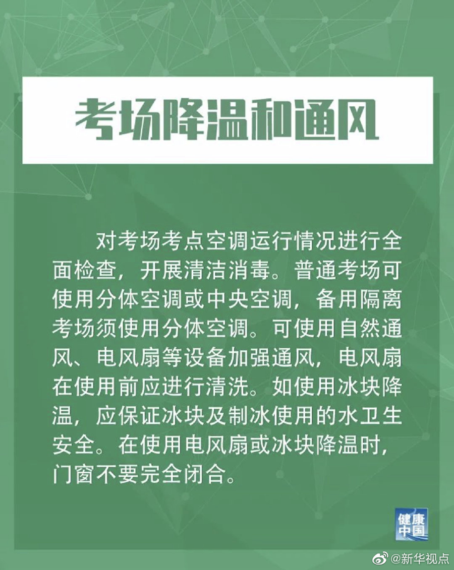 措施提到,發(fā)生過疫情的學(xué)校,不能作為考點。低風(fēng)險地區(qū)在每天考試結(jié)束后,對考場做一次預(yù)防性消毒;非低風(fēng)險地區(qū)要在每科考試結(jié)束后做一次預(yù)防性消毒。