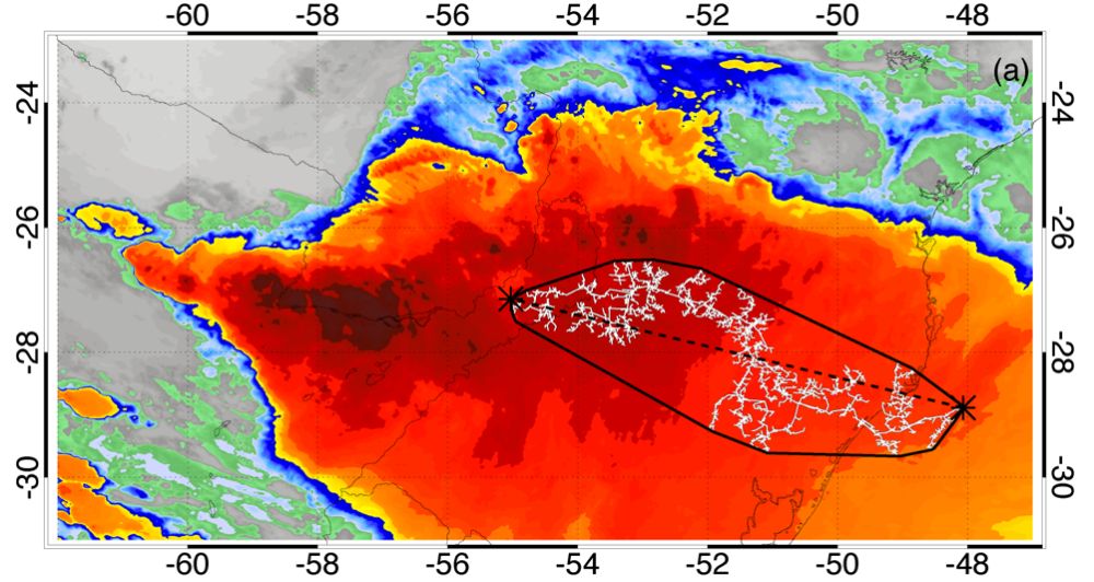 衛(wèi)星照片:單次長度最長閃電2018年10月31日發(fā)生在巴西南部。(圖片來源:世界氣象組織網站)