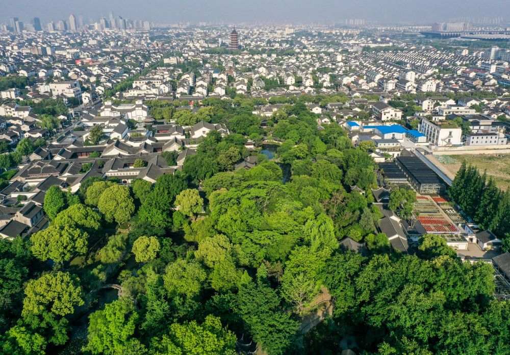 2019年5月9日拍攝的江蘇省蘇州城區(qū)風貌(無人機照片)。新華社記者 李博 攝