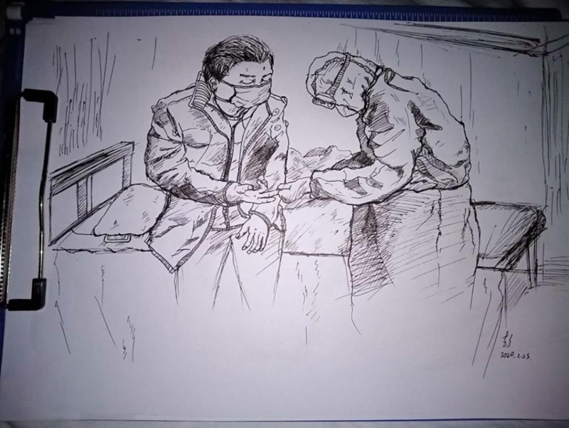 2月27日,來(lái)自貴州遵義的援鄂醫(yī)療隊(duì)護(hù)士長(zhǎng)李蘭收到了患者送給她的一份珍貴禮物——一幅素描畫(huà)。畫(huà)中的李蘭正在悉心照顧病患,穿著防護(hù)服的身影,充滿著溫暖的力量……
