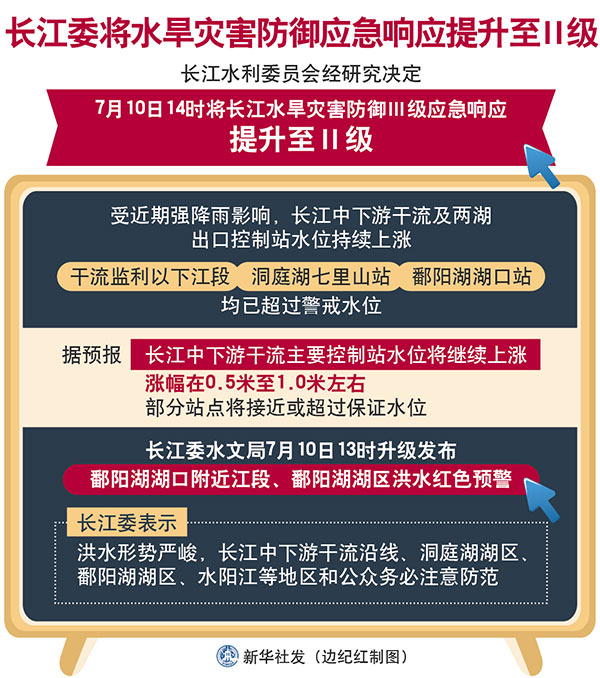 新華社武漢7月10日電(記者李思遠(yuǎn)、樂文婉)鑒于當(dāng)前長(zhǎng)江流域洪水防御的嚴(yán)峻形勢(shì),長(zhǎng)江水利委員會(huì)經(jīng)研究決定,10日14時(shí)將長(zhǎng)江水旱災(zāi)害防御Ⅲ級(jí)應(yīng)急響應(yīng)提升至Ⅱ級(jí)。
