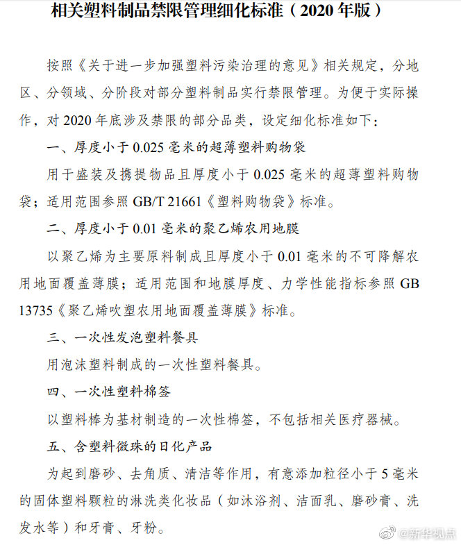 國家發(fā)展改革委等9部門17日公布文件,要求扎實推進塑料污染治理工作,8月底前,各地要啟動商場超市、集貿(mào)市場、餐飲行業(yè)等重點領域禁限塑推進情況專項執(zhí)法檢查。年底前,生態(tài)環(huán)境部、國家發(fā)展改革委將會同各相關(guān)部門開展塑料污染治理督促檢查聯(lián)合專項行動,對各地實施方案制定、工作推進和監(jiān)督執(zhí)法情況進行部委聯(lián)合督查。(記者安蓓)