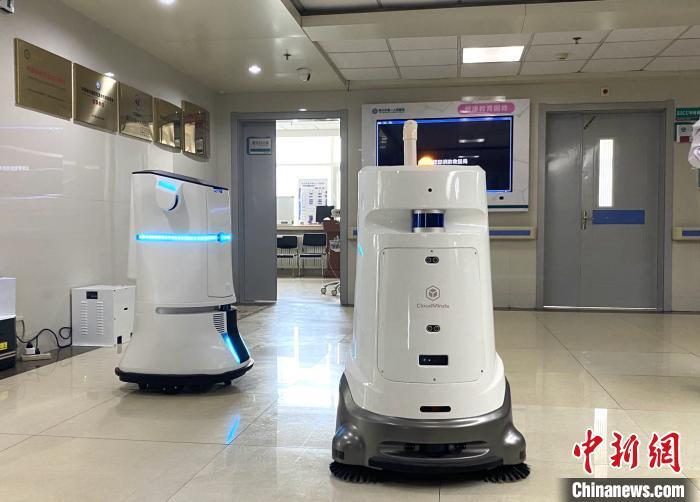 資料圖:銀川市第一人民醫(yī)院內(nèi),智能機(jī)器人正在工作?!畹?攝