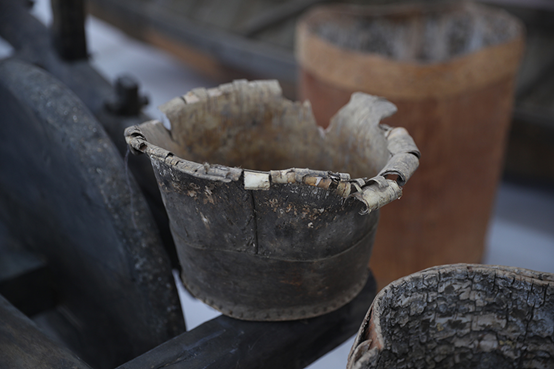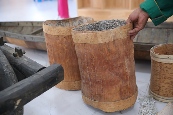 圖為那春林制作的樺樹皮筒。新華網(wǎng)記者焦鵬攝
