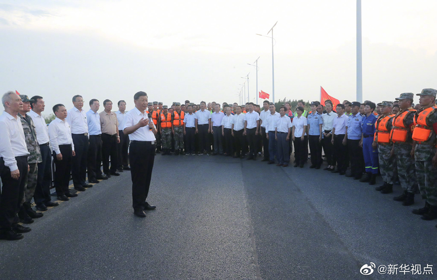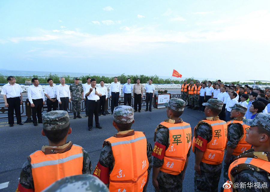 19日下午,正在安徽考察調(diào)研的習(xí)近平總書(shū)記來(lái)到合肥市肥東縣十八聯(lián)圩生態(tài)濕地蓄洪區(qū)巢湖大堤羅家疃段,察看巢湖水勢(shì)水情。他強(qiáng)調(diào),洪水退后,要防止蓄洪區(qū)內(nèi)出現(xiàn)水退人進(jìn)的現(xiàn)象。我們要實(shí)現(xiàn)人與自然和諧相處,就不能同自然爭(zhēng)奪發(fā)展空間。八百里巢湖要用好,更要保護(hù)好、治理好,使之成為合肥這個(gè)城市最好的名片。(文字記者:張曉松 攝影記者:鞠鵬 王曄 燕雁)