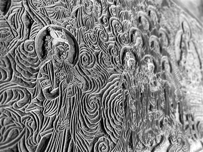 隨著白富鋼的五指輕盈地在古老的木板上游走,一塊木質(zhì)經(jīng)板上縱橫的紋理逐漸明晰起來。這批經(jīng)板始刻于清雍正十一年(公元1733年),完成于清乾隆三年(公元1738年),是我國漢文大藏經(jīng)卷帙中收錄最豐富,也是最后一部官方雕印本。經(jīng)板共計79036塊,總重達(dá)400噸??胺Q我國木板經(jīng)書之最。