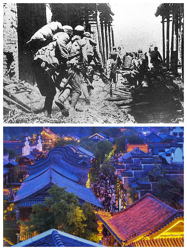上圖為1938年4月上旬,中國(guó)軍隊(duì)在臺(tái)兒莊與日軍展開激烈巷戰(zhàn)。