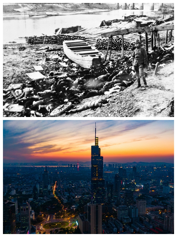 上圖為1937年12月中旬,日本侵略軍攻占中國(guó)南京后,對(duì)中國(guó)老百姓進(jìn)行了空前的慘無人道的大屠殺。在南京城西一條流往長(zhǎng)江的小河邊,被日本侵略軍殺害的中國(guó)人,尸體遍地血流成河。