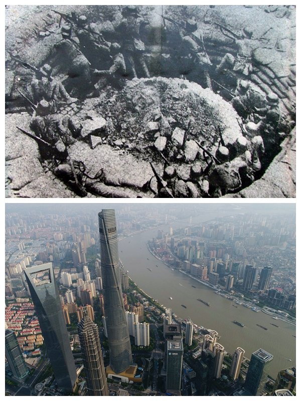 上圖為1937年8月13日至11月12日,中日軍隊(duì)進(jìn)行淞滬會(huì)戰(zhàn),這次會(huì)戰(zhàn)粉碎了日本軍國(guó)主義者速戰(zhàn)速?zèng)Q的迷夢(mèng)。這是中國(guó)軍隊(duì)88師在上海閘北的環(huán)形工事里同日軍巷戰(zhàn)。