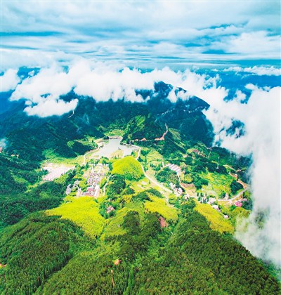 鳥瞰浙江省臺州市仙居縣朱溪鎮(zhèn)楊豐山金色梯田美景。 王華斌攝(人民圖片)