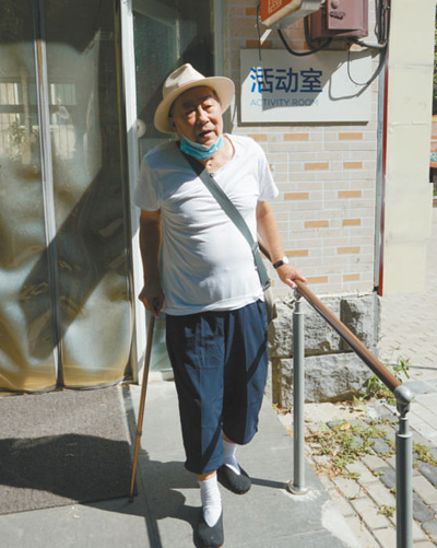 北京市海淀區(qū)北下關(guān)街道南里二社區(qū)經(jīng)過(guò)適老化改造后,老人生活更加方便。圖為社區(qū)養(yǎng)老服務(wù)中心門口,腿腳不便的老人依靠扶手出門。記者 申少鐵攝