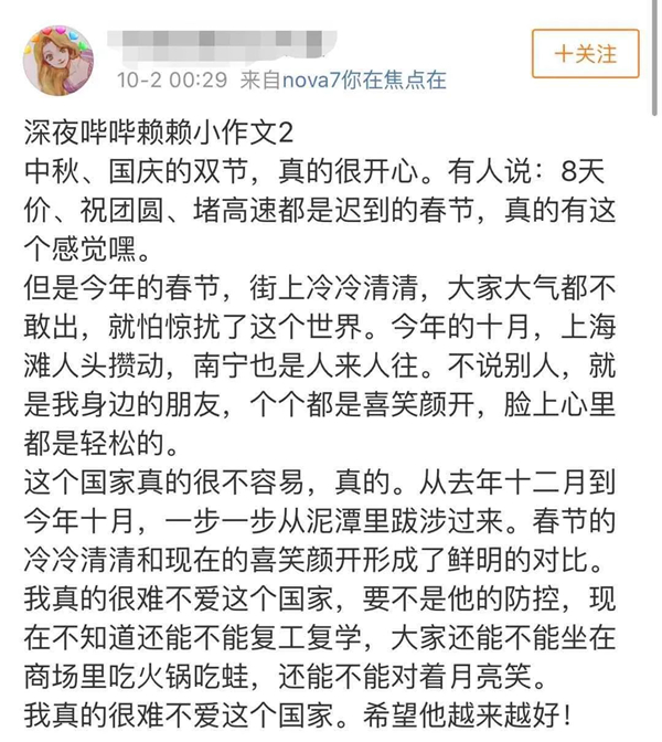 正如網(wǎng)友所說:“這個國家,真的很不容易?!钡舱且驗樵?jīng)的艱難,才讓所有經(jīng)歷過那些驚惶、擔憂、迷茫的人,在重回平靜的生活后,會倍感山川清秀、歲月溫柔,那之前被按下暫停鍵的團圓飯、那口早就該喝下的老燒酒、還有那個欠下好久的擁抱,都會帶給人更強烈的幸福。