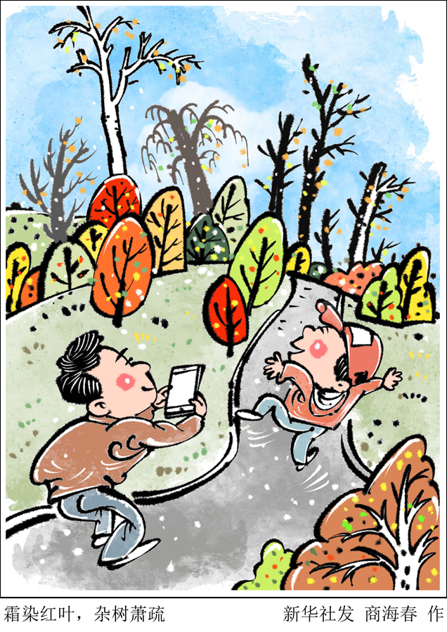 羅澍偉說,從“寒露”至“霜降”,北方霜染紅葉,南方蟬噤荷殘,秋色斑斕,美不勝收;廣大農(nóng)村則進入秋熟作物收割、越冬作物播種的大忙季節(jié),石榴、山楂、柿子等果子成熟,掛滿枝頭,累累碩果惹人醉。