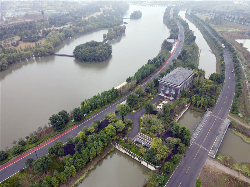 這是10月16日拍攝的安徽省潁上縣沿淮水利生態(tài)景區(qū)——五里湖濕地公園(無人機照片)。新華社記者 劉軍喜 攝