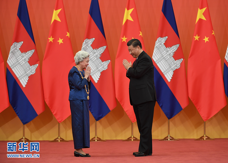 習近平為柬埔寨太后莫尼列舉行中華人民共和國“友誼勛章”頒授儀式