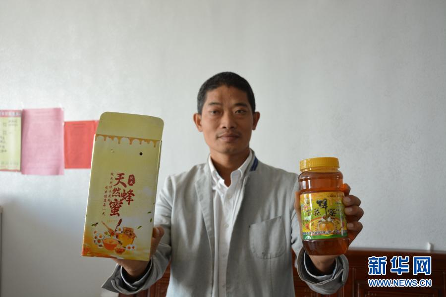 在福建省龍巖市長汀縣,劉春生在家中展示他養(yǎng)殖的蜜蜂所產蜂蜜(11月11日攝)。新華社記者 張華迎 攝