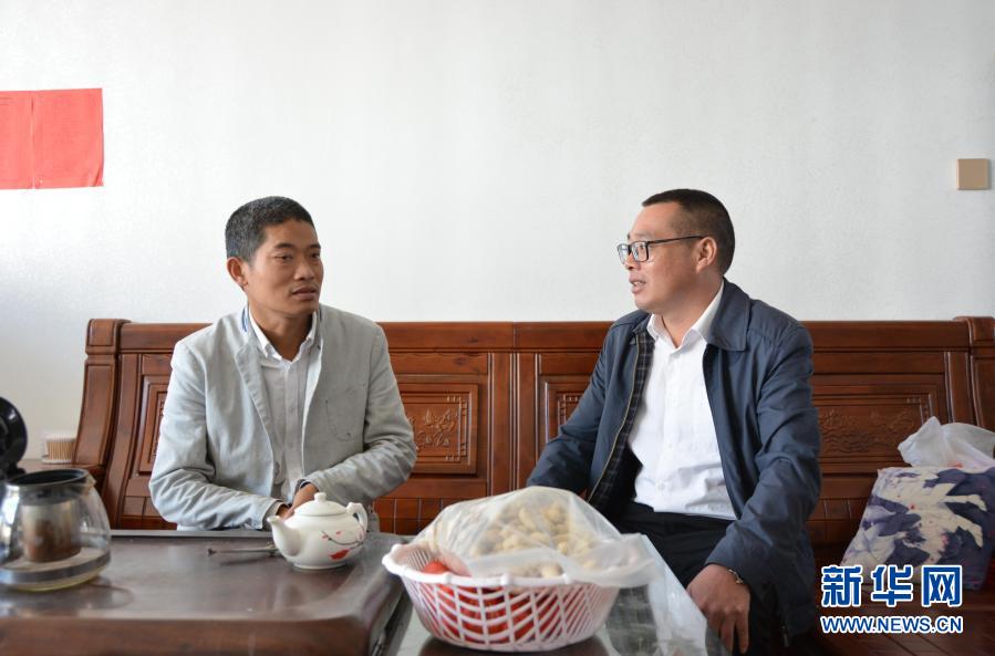 福建省龍巖市長汀縣策武鎮(zhèn)副鎮(zhèn)長張橋水向劉春生(左)了解收入情況(11月11日攝)。新華社記者 張華迎 攝
