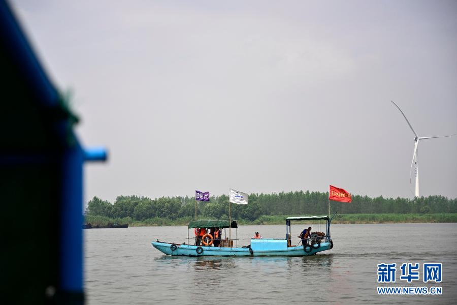 在江西省湖口縣,江豚協(xié)助巡護隊的隊員在鄱陽湖水域巡查(6月8日攝)。新華社記者 彭昭之 攝