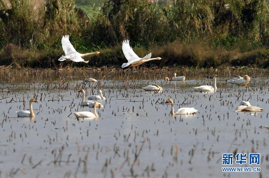 這是11月11日在湖南西洞庭湖國家級自然保護區(qū)拍攝的候鳥。新華社記者 陳思汗 攝