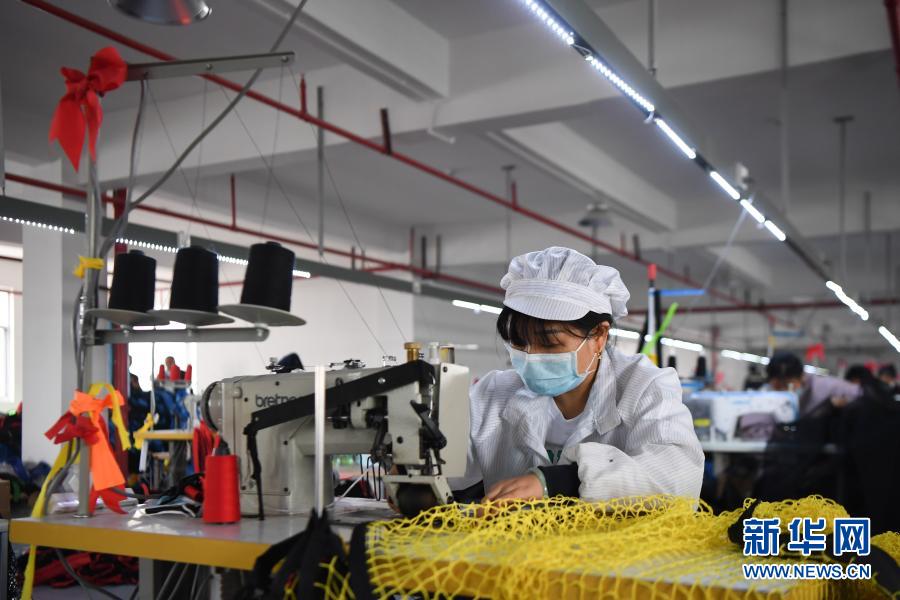 工人在湖南星海運動用品有限公司加工運動用網(10月28日攝)。新華社記者 薛宇舸 攝