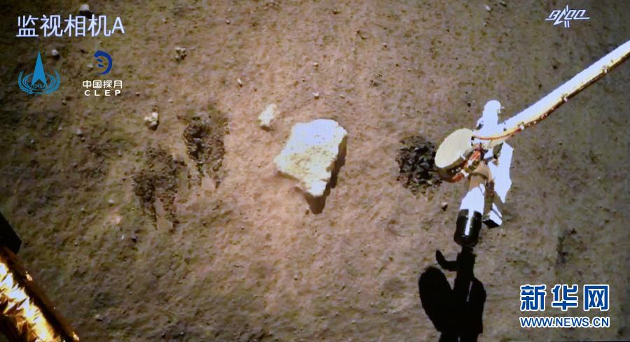 12月2日,嫦娥五號(hào)探測(cè)器在月球表面自動(dòng)采樣。