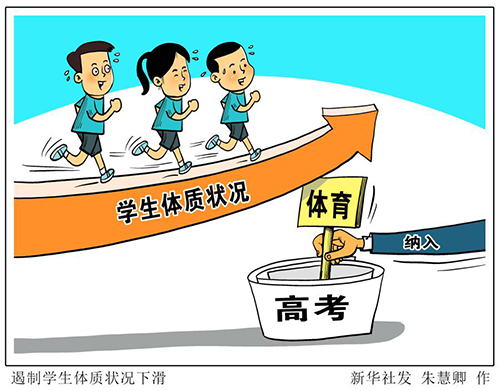 中國青少年體質(zhì)狀況堪憂,缺乏體育鍛煉被認(rèn)為是其中一個(gè)較為重要的原因。記者在調(diào)研中發(fā)現(xiàn),孩子缺乏體育鍛煉,并非因?yàn)榧议L、老師等不懂得體育的重要性,而是因?yàn)樾∩酢⒅锌?、高考等成績事關(guān)重大,很多家長為了考分寧可犧牲孩子的體育鍛煉時(shí)間。