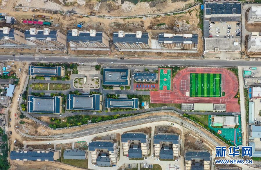 這是河北省阜平縣龍泉關(guān)學校鳥瞰圖(10月5日攝,無人機照片)。新華社發(fā)