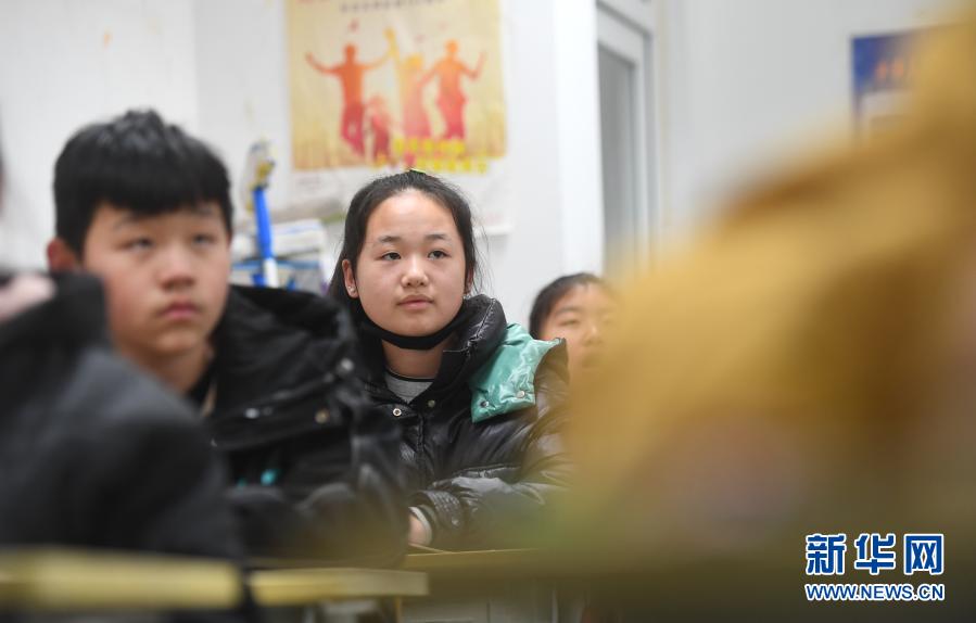 韓景芳(左二)在阜平縣龍泉關(guān)學校教室上課(11月25日攝)。新華社記者 朱旭東 攝
