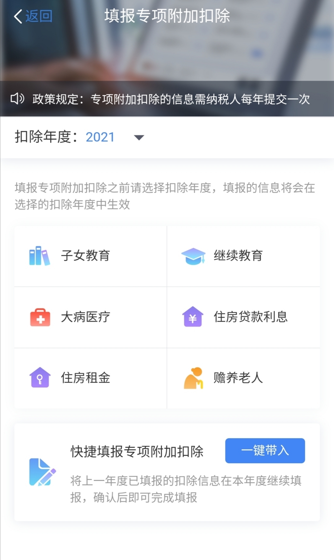 如何確認(rèn)?納稅人從APP首頁(yè)進(jìn)入“填報(bào)專項(xiàng)附加扣除”頁(yè)面后,既可以選擇一鍵帶入,即將上一年度已填報(bào)的扣除信息在本年度繼續(xù)填報(bào),確認(rèn)后即可完成填報(bào),也可以按目前自身實(shí)際情況逐項(xiàng)填報(bào)。若未及時(shí)確認(rèn),那么已填報(bào)的扣除信息將自動(dòng)視同有效并延長(zhǎng)至2021年。