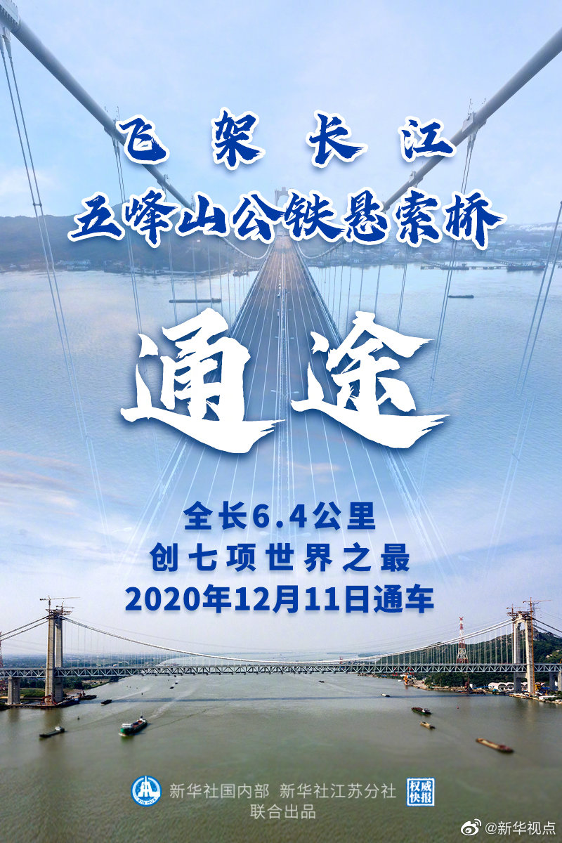 11日上午,世界上最大的公鐵兩用懸索橋——連接江蘇揚州和鎮(zhèn)江的五峰山長江大橋通車啦!大橋全長6.4公里,創(chuàng)七項世界之最。(記者:楊紹功、吳新生 設(shè)計:張惠慧、張晨光)?