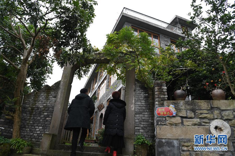 游客走進重慶市萬州區(qū)大周鎮(zhèn)五土村一民宿(12月10日攝)。新華社記者 王全超 攝