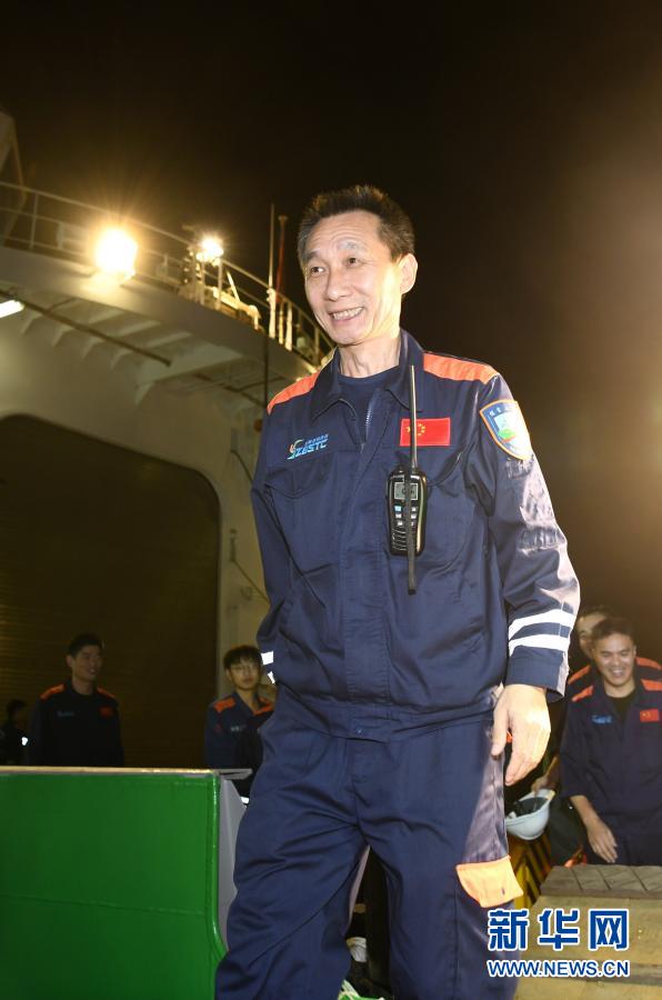 12月21日,“奮斗者”號海試保障母船“探索二號”靠泊三亞,科考隊(duì)員離船。新華社記者 趙穎全 攝
