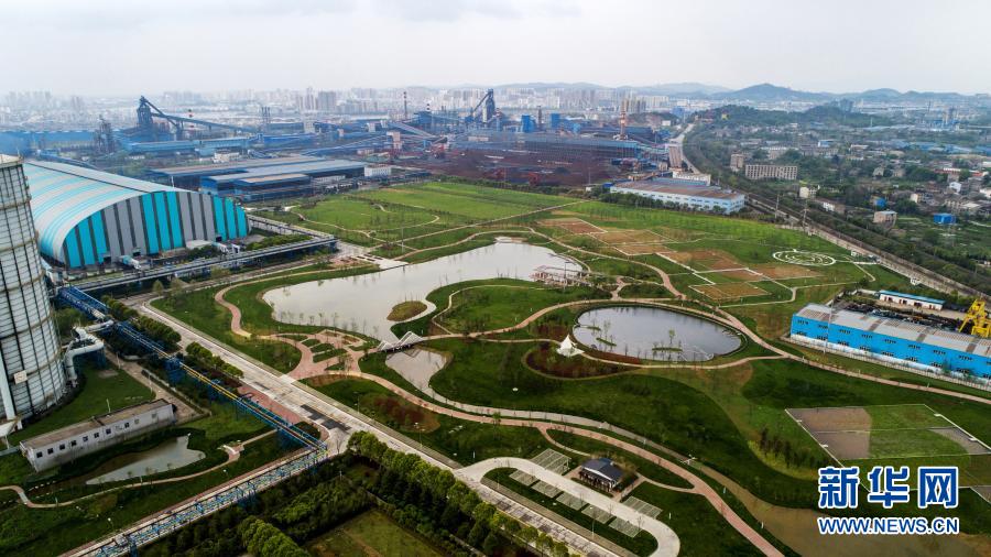 這是3月26日在鄂鋼廠區(qū)拍攝的兼具廢水凈化功能的廠區(qū)花溪濕地公園。新華社發(fā)(桂多 攝)