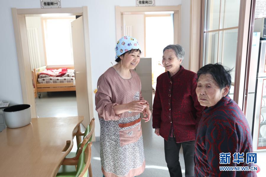 10月22日,西寧市城西區(qū)溫馨陽光托老所內(nèi),護理員張蓉霞(左)在與老人聊天。新華社記者 吳剛 攝