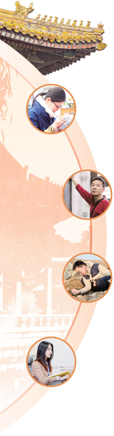 圖①:楊玉潔在修復(fù)瓷器。賴(lài)奐瑜攝 圖②:郁文韜在介紹碑文。尚 輝攝 圖③:吳偉參與明中都遺址考古發(fā)掘。寧 霄攝 圖④:康曉璐為制作APP查閱資料。朱 楷攝