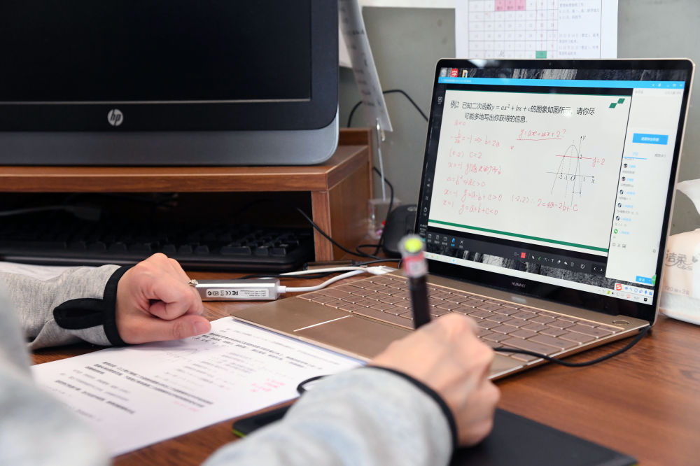 4月14日,在北京科技大學附屬中學,學生在線上初三數(shù)學課。新華社記者 任超 攝